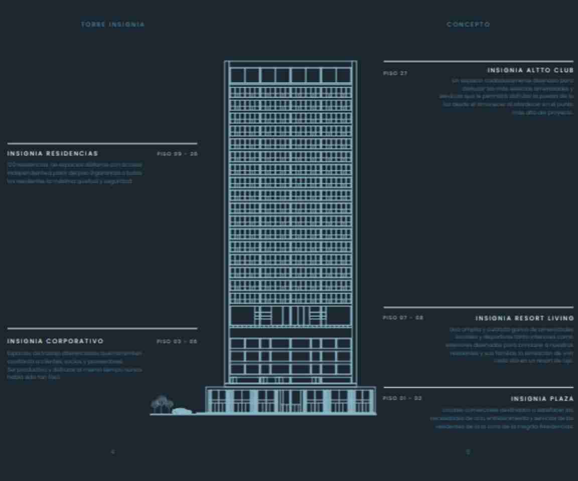 Torre Insignia, edificio de usos mixtos en el norte de Mérida, que integrará comercios, oficinas y lujosas residencias creando nuevas experiencias y estilos de vida con vistas panorámicas incomparables a una ciudad que se transformá día a día frente a ella. Insignia residencias: 120 residencias de espacios diáfanos con acceso independiente a partir del piso 9 garantiza a todos los residentes la máxima quietud y seguridad.