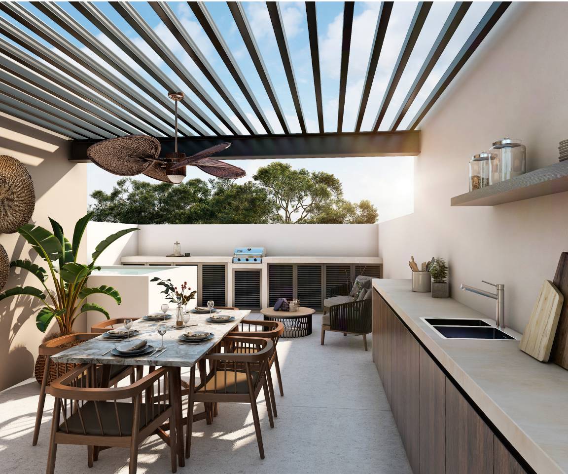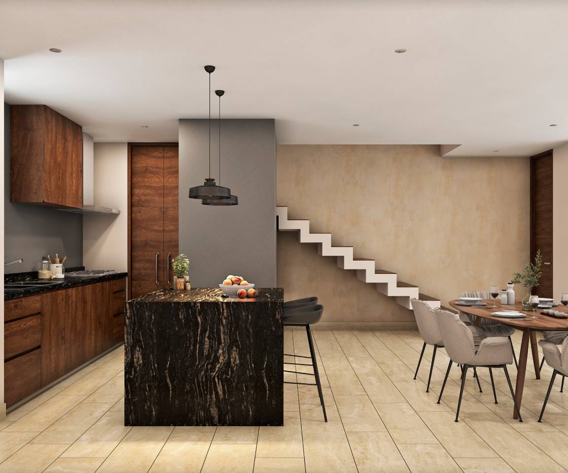 - Carpintería completa en cocina, gavetas inferiores y superiores en madera dura dzalam o similar.